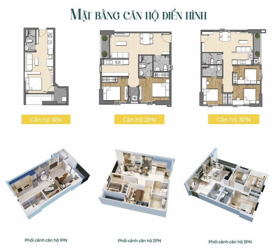Diện tích 35–60 m² cho 1–2 ngủ, phù hợp gia đình trẻ và chuyên gia