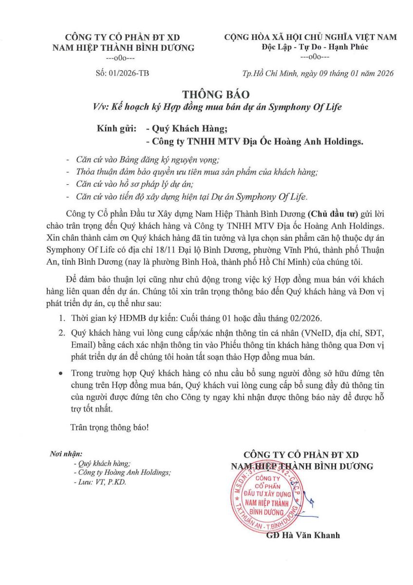 Trong hành trình sở hữu căn hộ, ký hợp đồng mua bán là bước chuyển từ thỏa thuận ban đầu sang quyền lợi pháp lý rõ ràng của người mua. Với Symlife, giai đoạn chuẩn bị ký HĐMB cho thấy dự án đã hoàn thiện các điều kiện cần thiết theo lộ trình pháp lý.