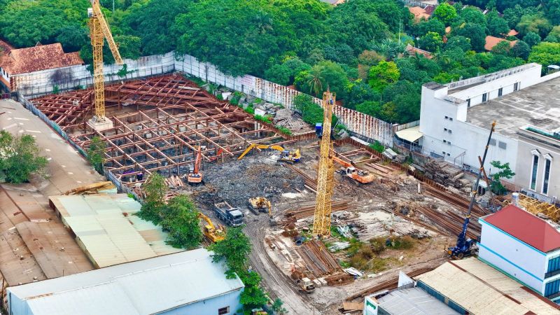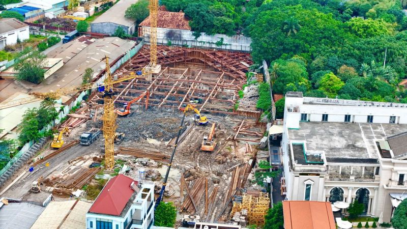 Tháng 6–7/2025, công trường bắt đầu đào hầm, thi công vách hầm và đổ bê tông hầm móng, thi công 3 ca mỗi ngày.