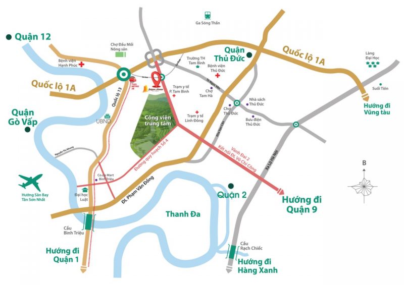 Với lợi thế vị trí này, cư dân dự án có thể di chuyển thuận tiện đến Quận 1, Bình Thạnh, Gò Vấp, Tân Bình và các tỉnh lân cận mà không lo kẹt xe, đồng thời tận hưởng cơ sở hạ tầng hiện đại của khu đô thị Thủ Đức đang phát triển mạnh.