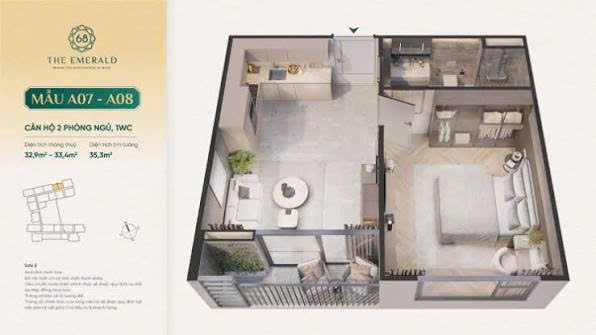 bán căn 1 phòng ngủ The Emerald 68